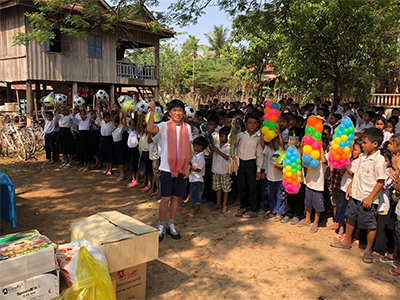And I could deliver sports equipments and school supplies for all 342 students to the school with kindergarten and elementary school which takes about 3 hours by car from Phnom Penh.
